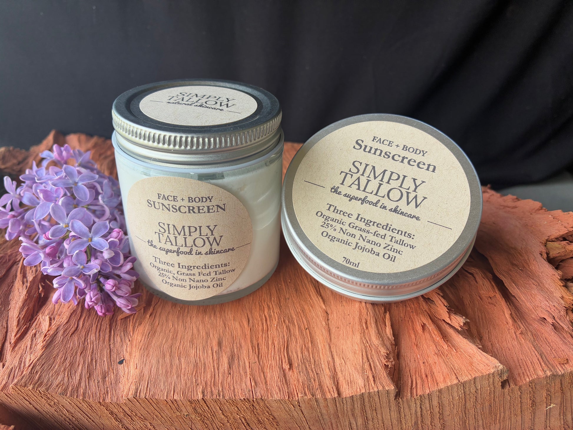Tallow Mineral Sunscreen,Three Ingredients, Face & Body, 25% Non-Nano Zinc, SPF 35 to 40, Sensitive Skin, All Ages, All Skin Types, Non Pore Clogging